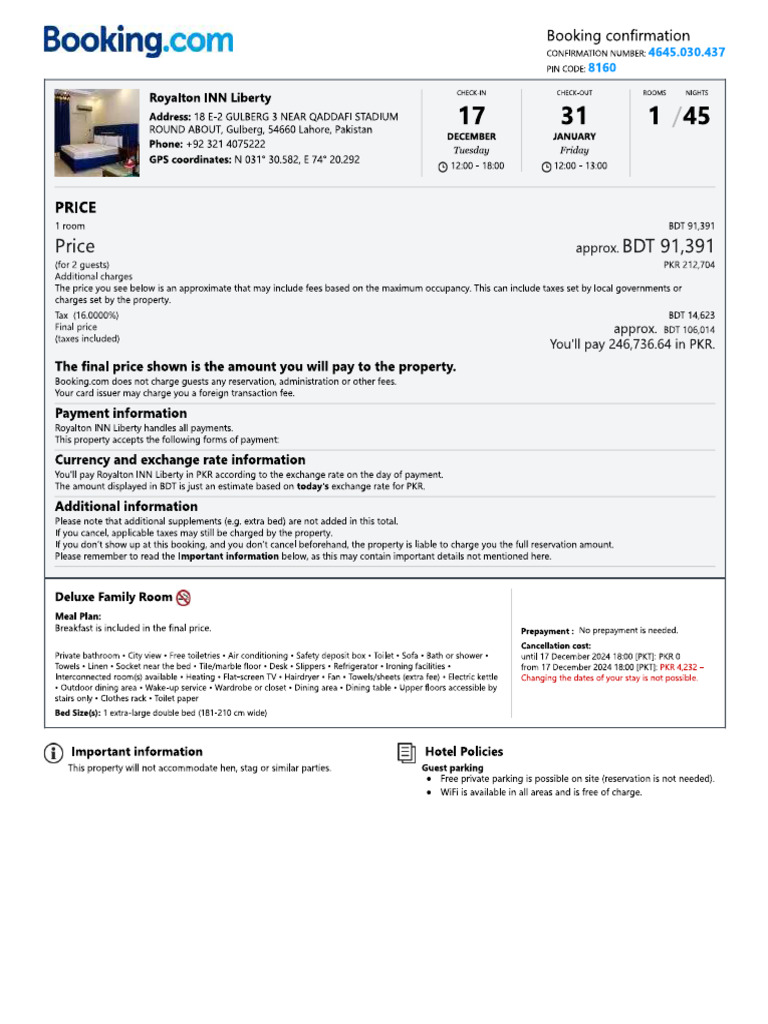 Zakir Hotel Booking | PDF