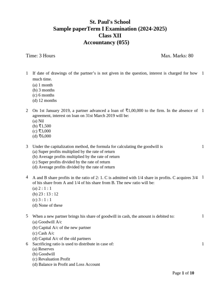 Accountancy 12 Term 1 Without Solution | PDF