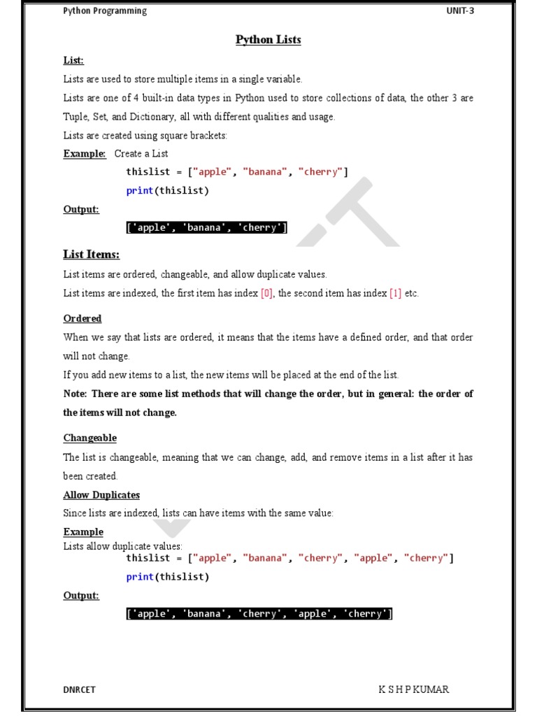 Based on this image's title: “ESIT135 Problem Solving Using Python Notes of Unit-3 | PDF