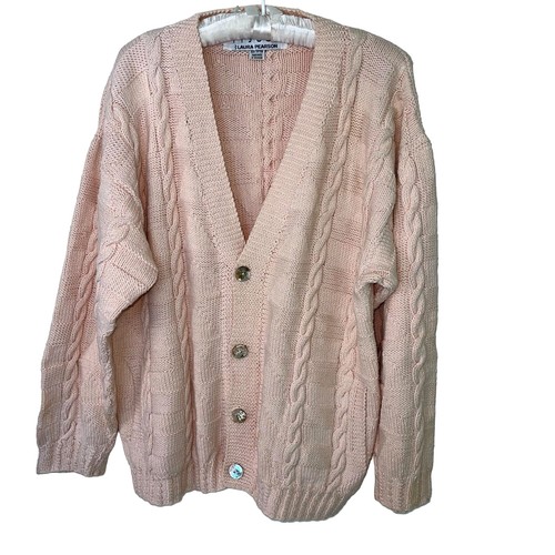 Tijuca Laura Pearson Cardigan Womens Size Medium Pink Cropped Chunky ...