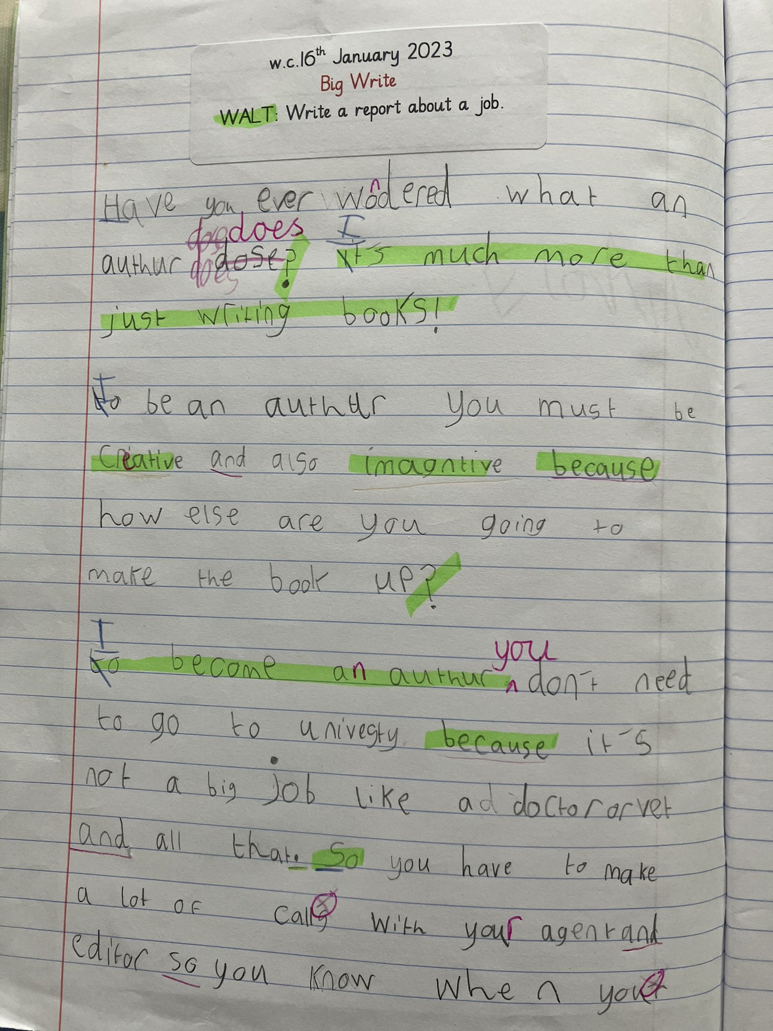 Laura Pearson on Twitter: "7yo had to write about a job at school and ...