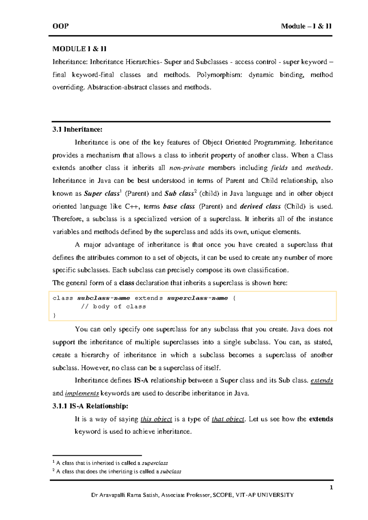 Java inheritance notes - 1 Inheritance: Inheritance can be defined as ...