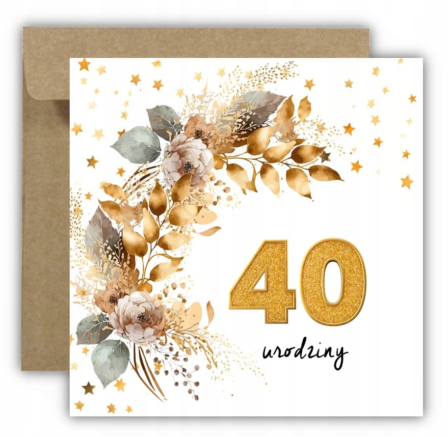 Złota elegancka kartka na na 40 urodziny - POMALUNKI.PL