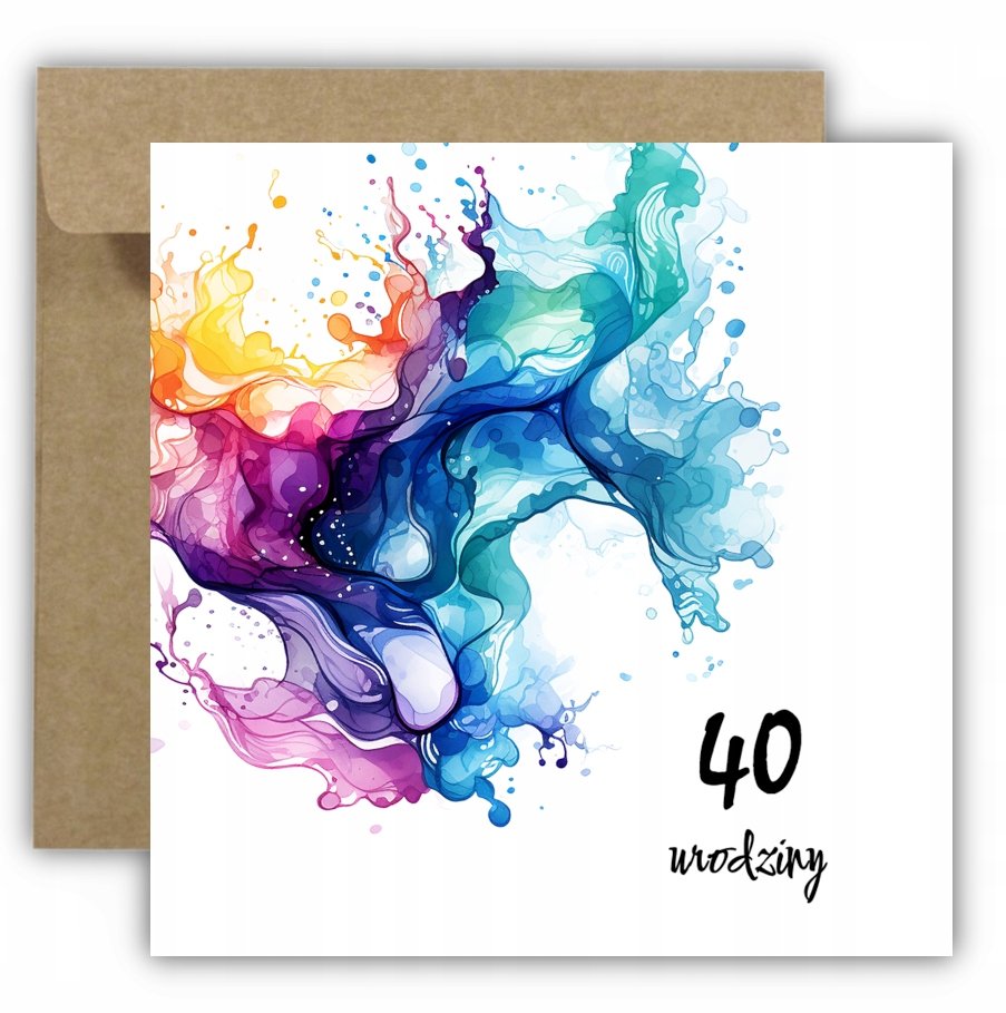 Kartka na 40 urodziny urodzinowa z liczbą farba abstrakcja kolorowa ...