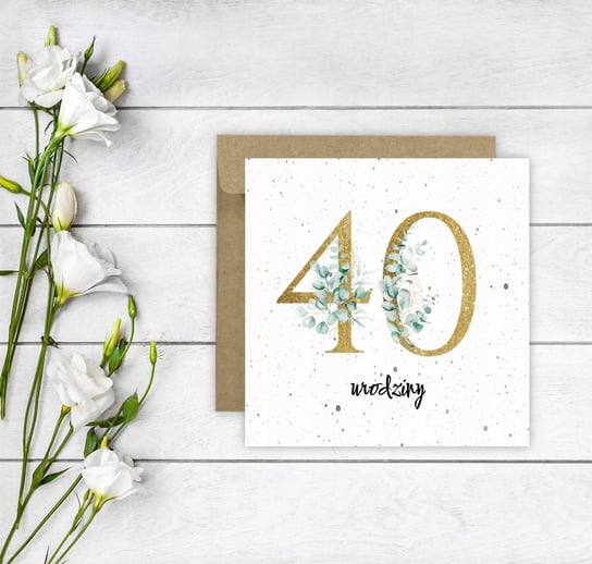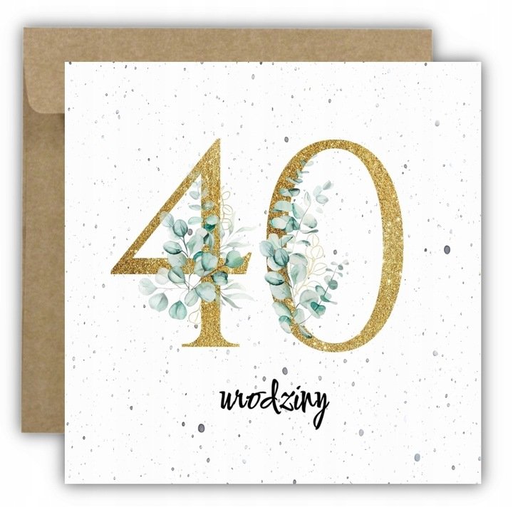 Kartka na 40 urodziny urodzinowa z liczbą liście elegancka Z ŻYCZENIAMI ...