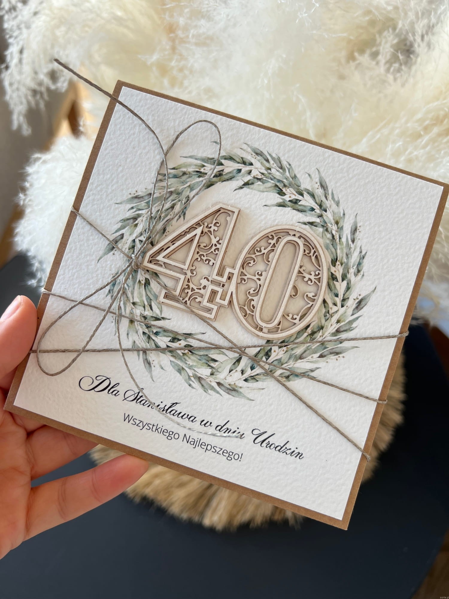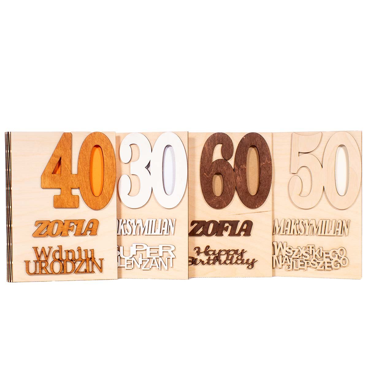 Based on this image's title: “Studio MAYA - Kartka na 40 urodziny, urodzinowa drewniana kartka z ...”