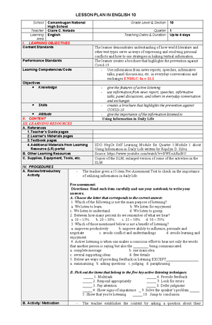 English 10 Quarter 1 – Module 6: Analytical Listening in Problem ...