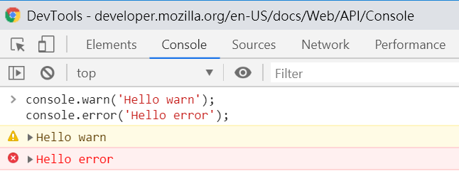print output on console using log(), warn(), error() function & print ...