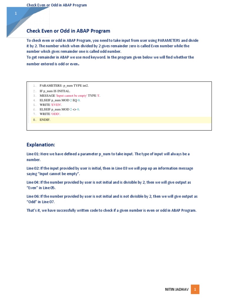 Check Even or Odd in ABAP Program | PDF | Career & Growth