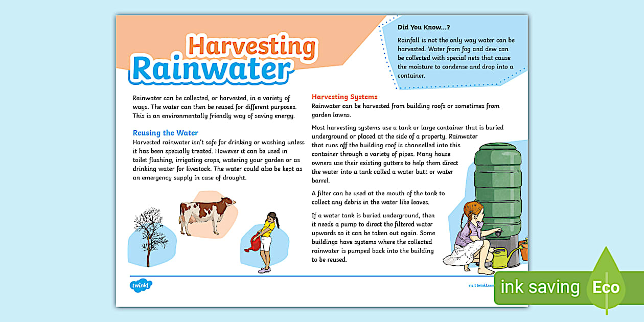 Rainwater Harvesting | Reading Passage Comprehension Questions Writing ...