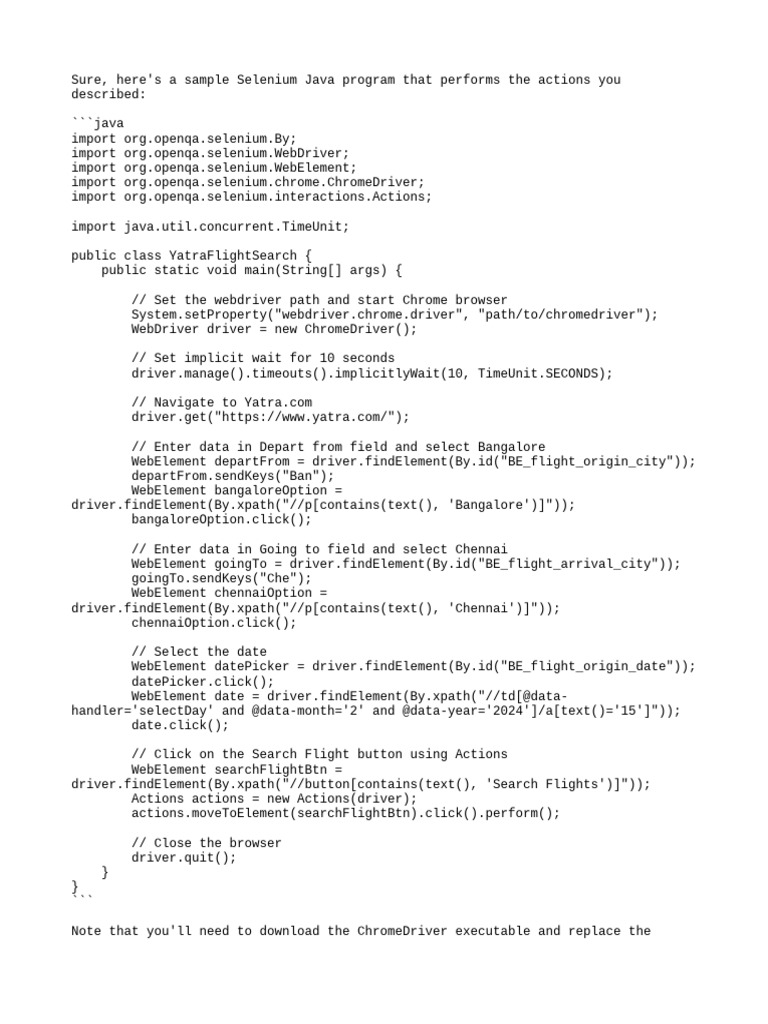 Selenium Java Yatra Flight Search Code | PDF