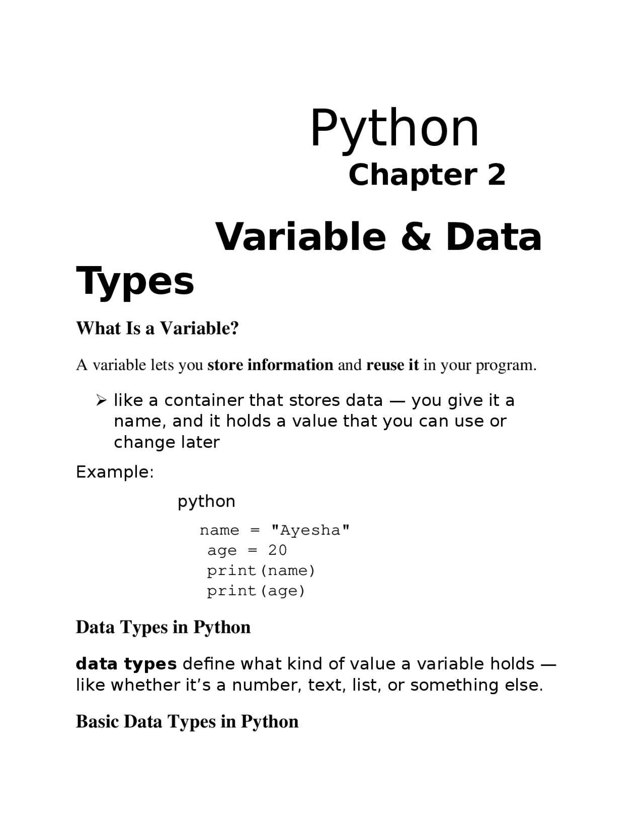 Python Programming chapter 2 | Study notes Programming Languages | Docsity