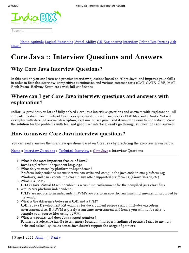 Core java cheatsheet - woorkbbok - JAVA CORE INTERVIEW QUESTIONS ...
