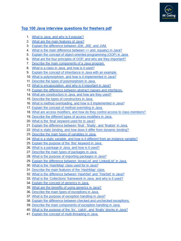Java Programming: Interview Questions for Freshers | by Code With Sunil ...