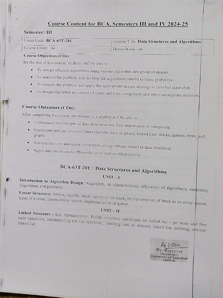 Rajasthan University BCA 3rd Semester Syllabus PDF 2026 - Uniraj