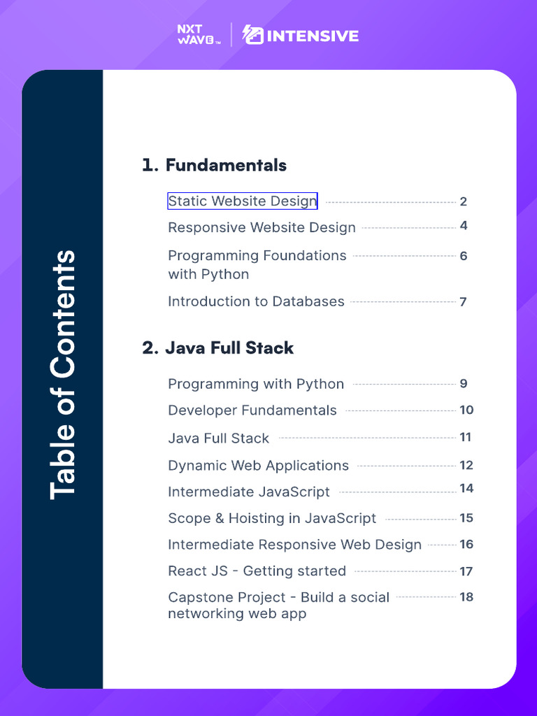 Based on this image's title: “Fundamentals and Java Fullstack Course Curriculum | PDF”
