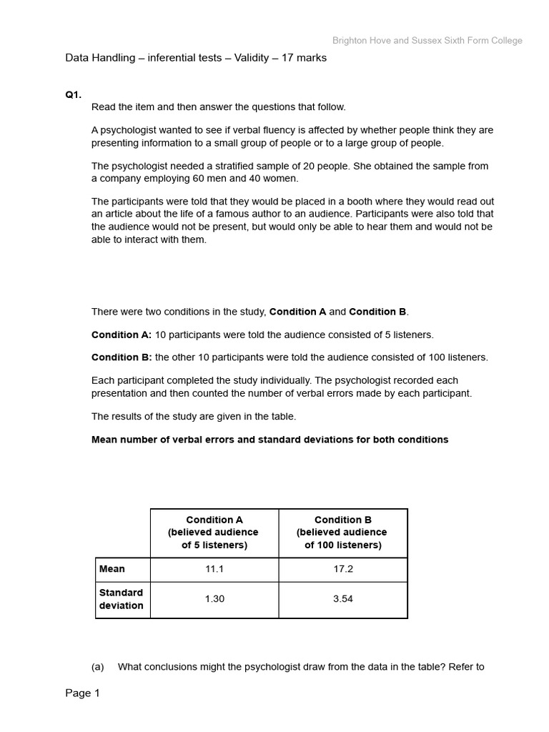 2nd Year Data Handling Descriptive and Inferential Stats 17 Marks | PDF ...