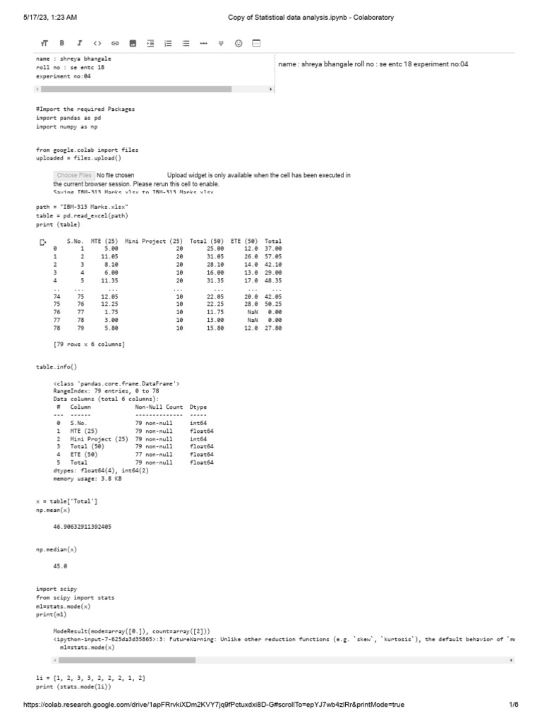 Statistics and Analytics - Unit 4 - Python Experiments 1 | PDF ...
