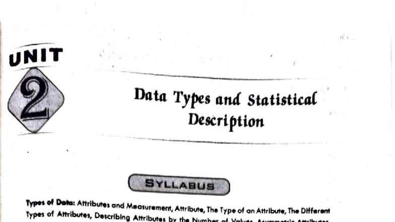 Data Types and Statistical Description: Unit 2 - IDS Notes - Studocu