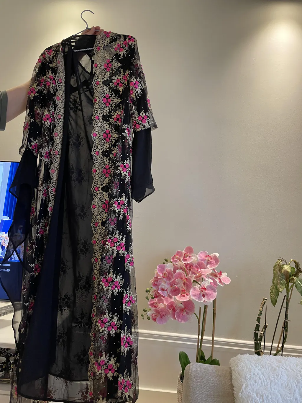 Black Kurdish Dress – Golden & Hot Pink 3D Flower Embroidery | Perfect ...