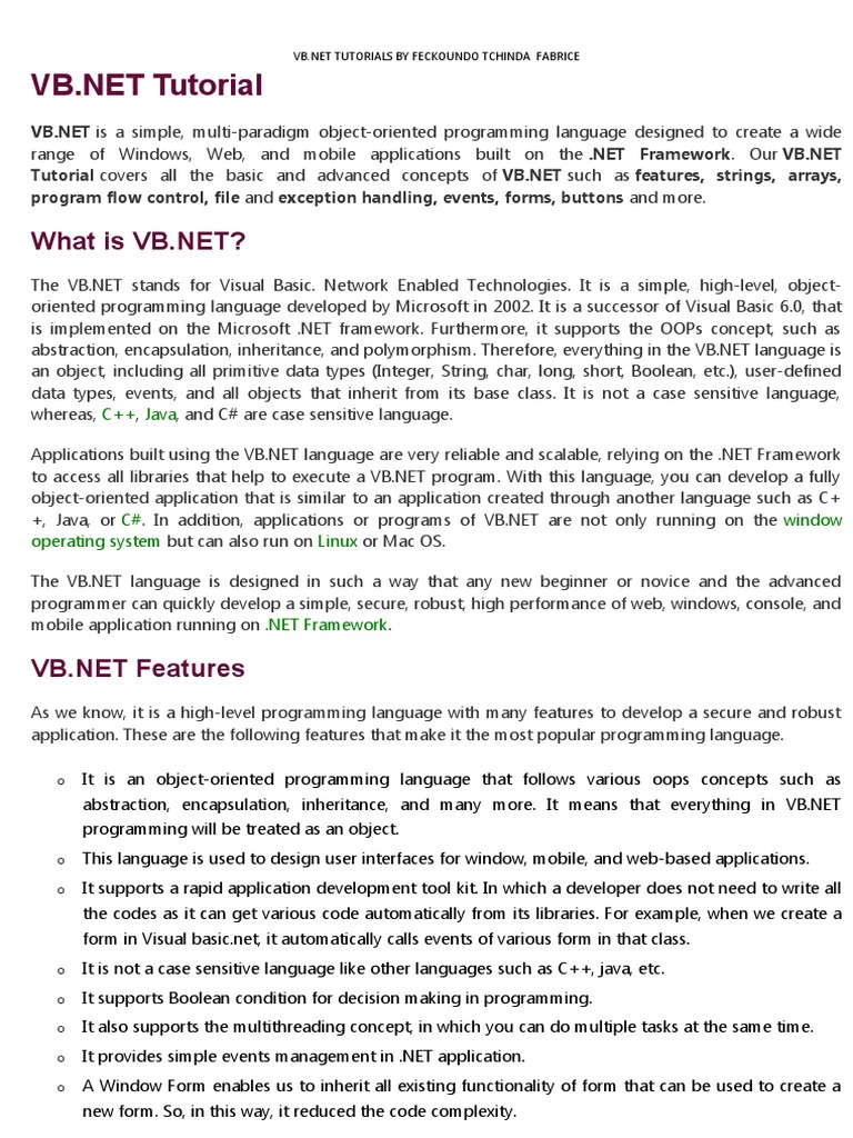 Microsoft Visual Basic .NET Tutorials For Beginners | PDF | Visual ...