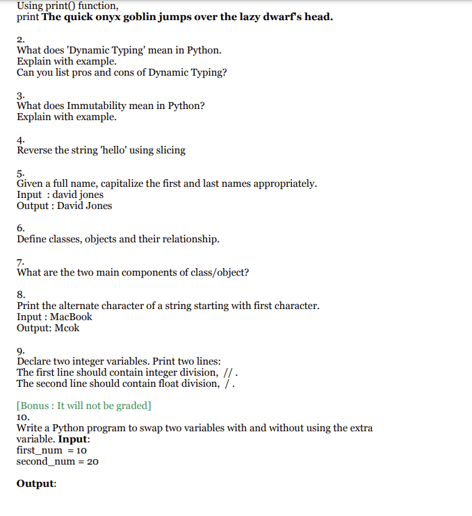 Solved Using print() function,print The quick onyx goblin | Chegg.com