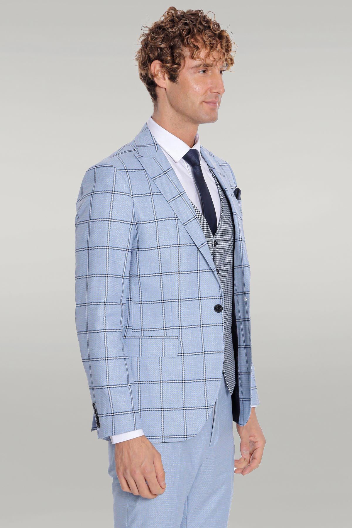 Men's Blue 4-Drop Relaxed Fit Patterned Suit | Kiğılı
