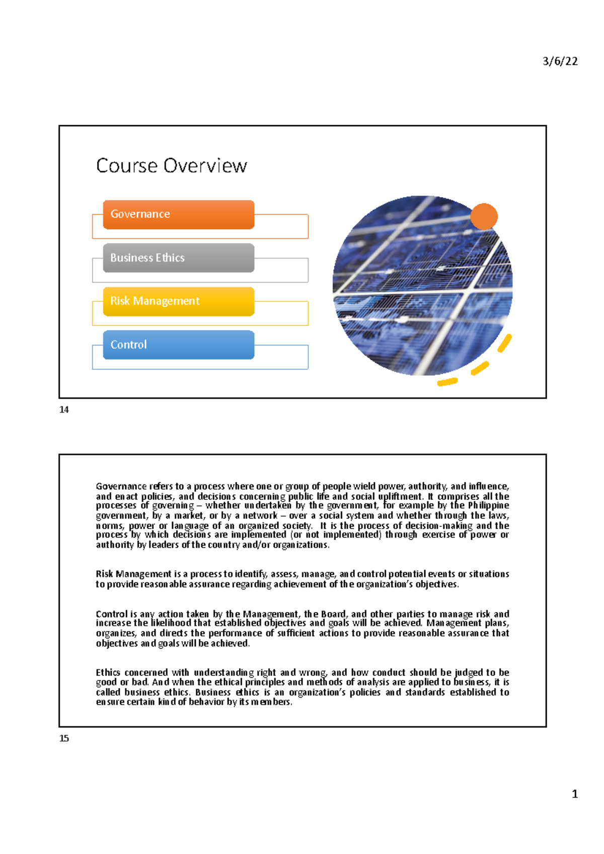 Module 1 Intro and Overview - 3/6/ 1 Course Overview Governance ...