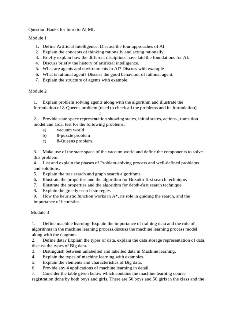 Intro to AI and ML Question Banks | PDF | Machine Learning | Artificial ...