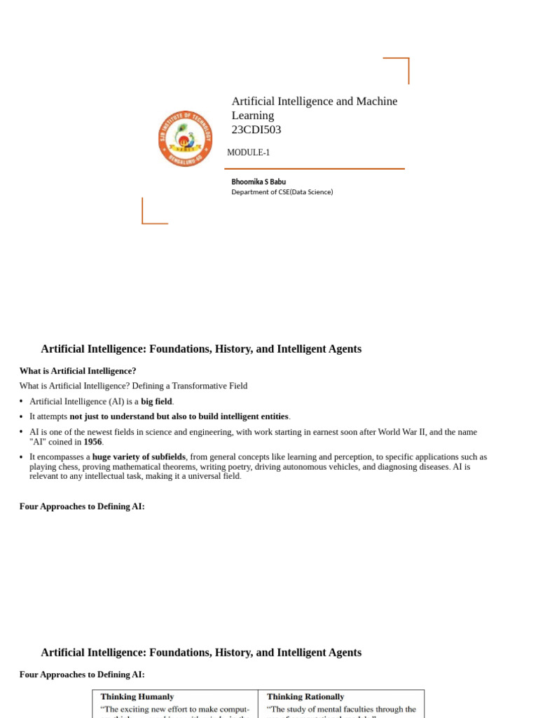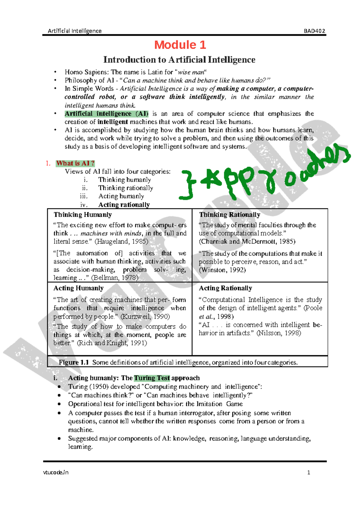 Artificial Intelligence BAD402 Module 1: Intro to AI Concepts and ...