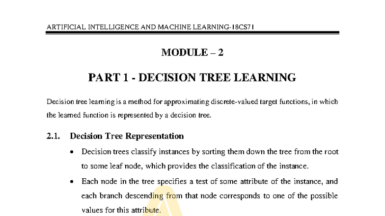 AI & ML Module 2: Decision Tree Learning Lecture Notes - Studocu