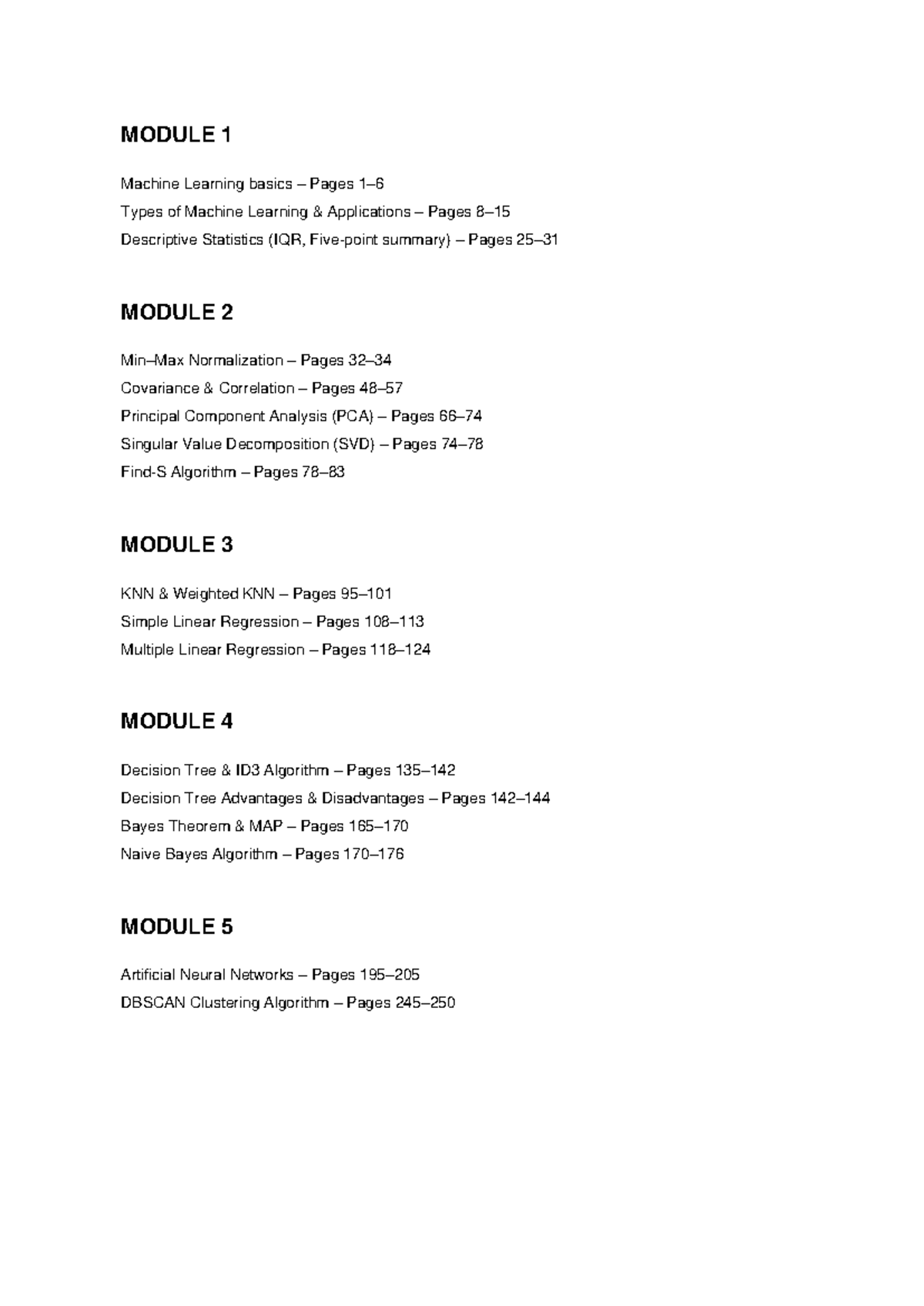 ML Module Wise Page Numbers - MODULE Machine Learning basics – Pages 1 ...