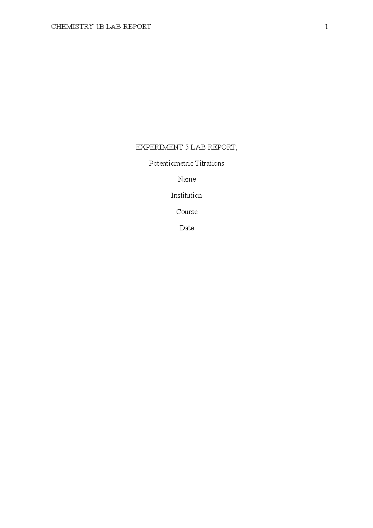 Exp 18 Potentiometric Analyses Report Template.docx - LABORATORY REPORT ...