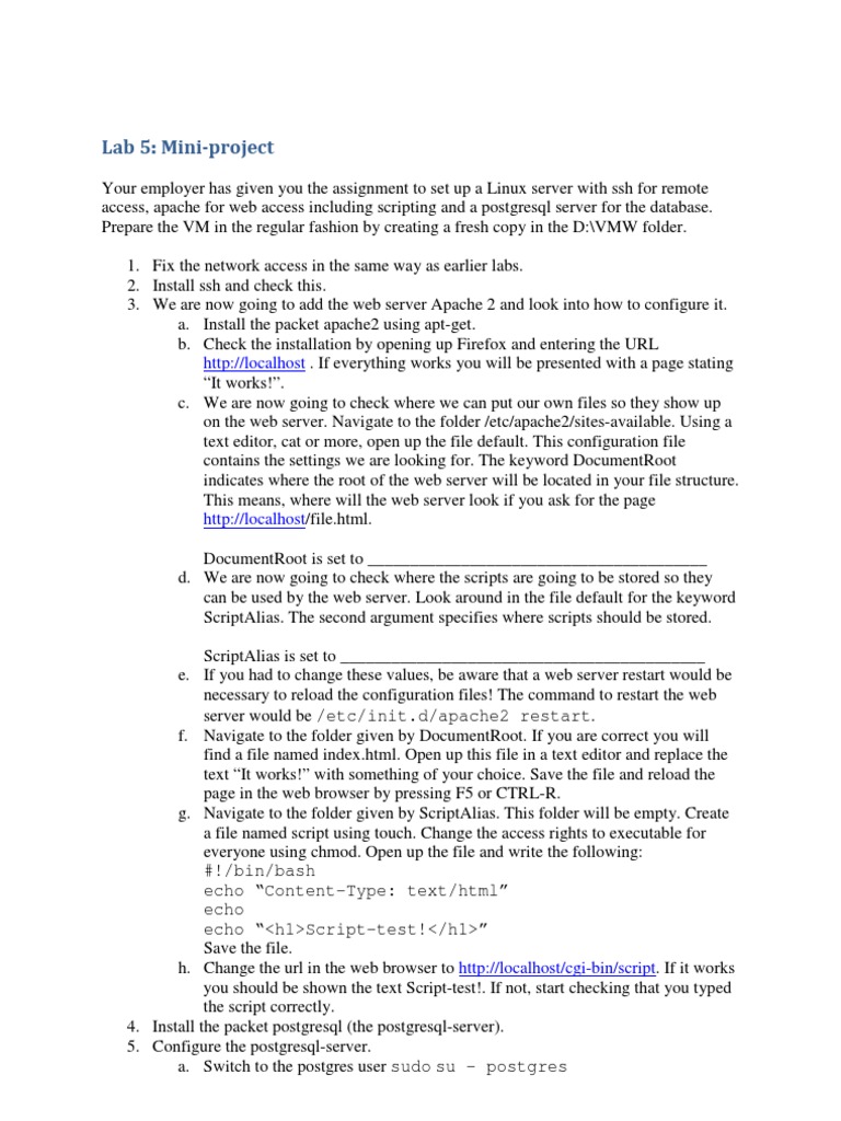Lab 5: Mini-Project: /etc/init.d/apache2 Restart | PDF | Web Server ...