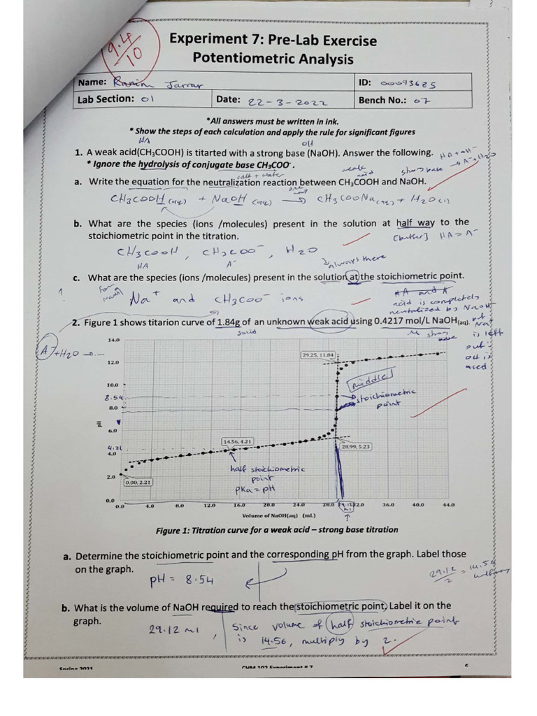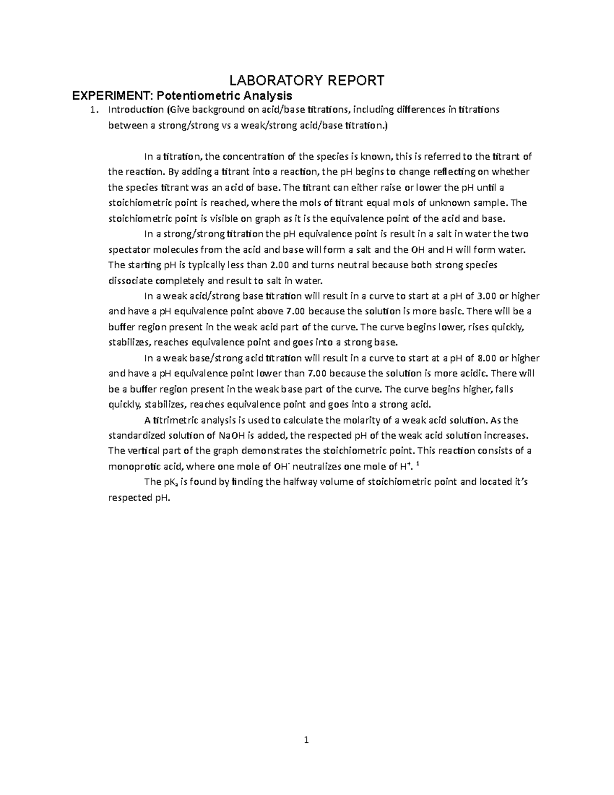 Lab Report Potentiometric Titration of a Weak Acid.docx - Chem 1B Lab ...