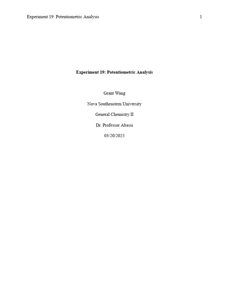Experiment 18 Lab Report.docx - Experiment 18: Potentiometric Analysis ...