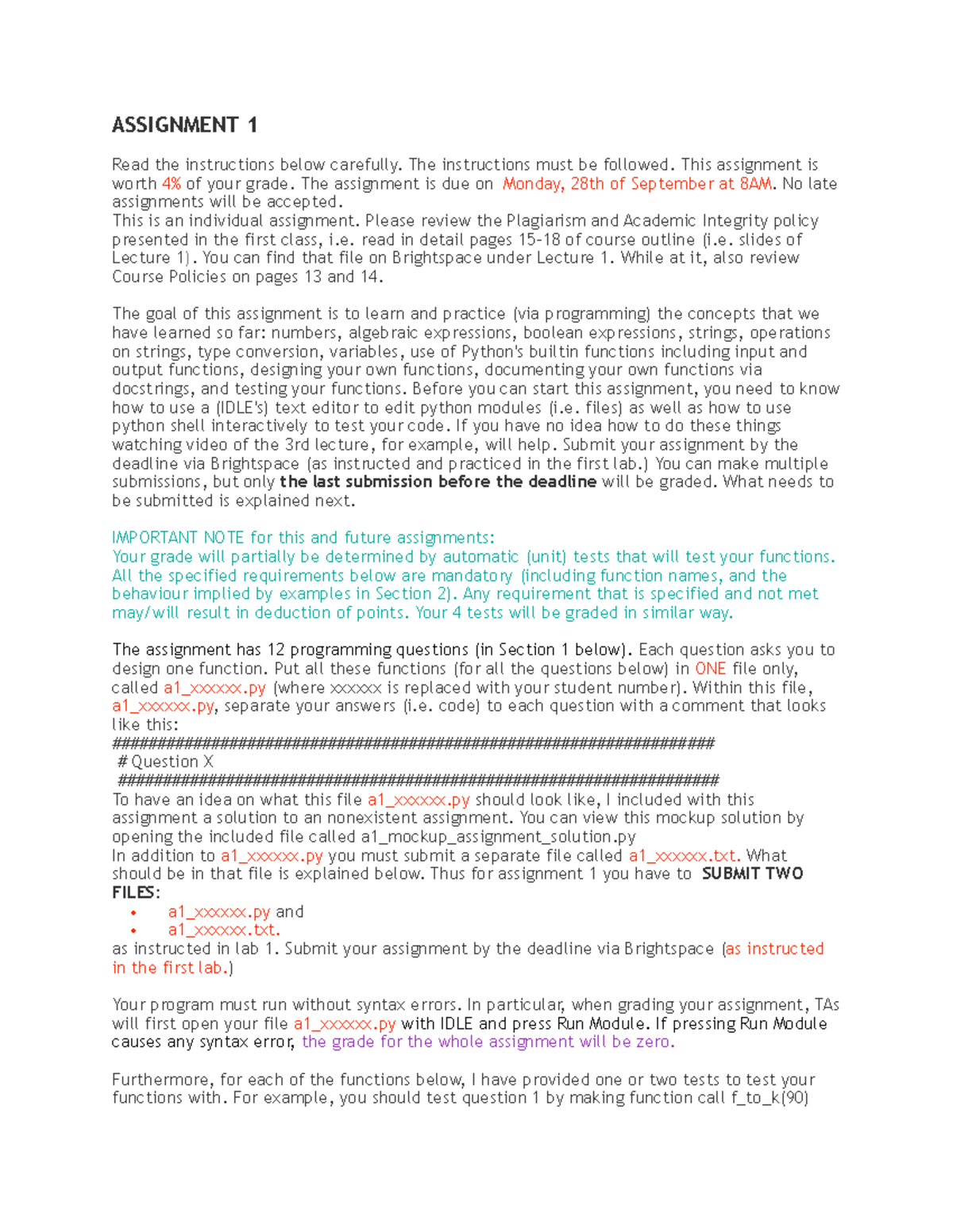 ITI1120-HW1 - First homework assignment given in this class - ITI 1120 ...
