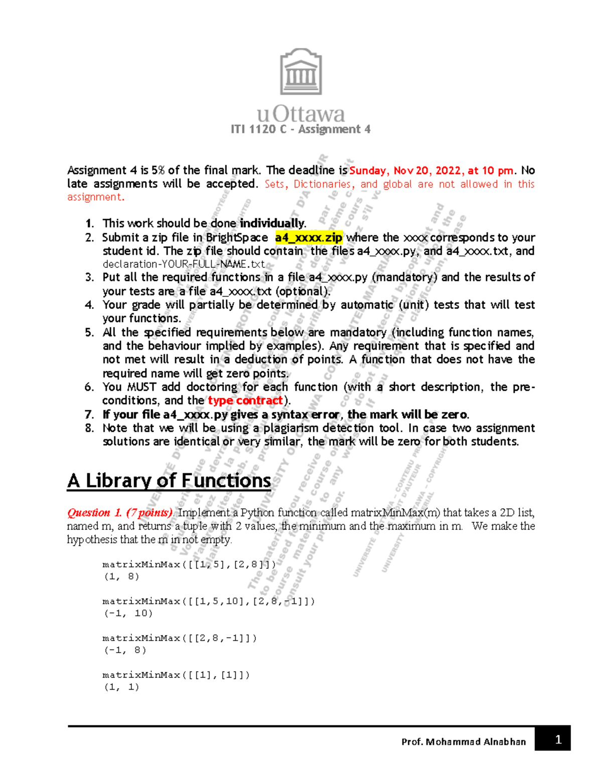 pythonAssignment2 - Prof. Mohammad Alnabhan 1 ITI 1120 C -Fall 2022 ...
