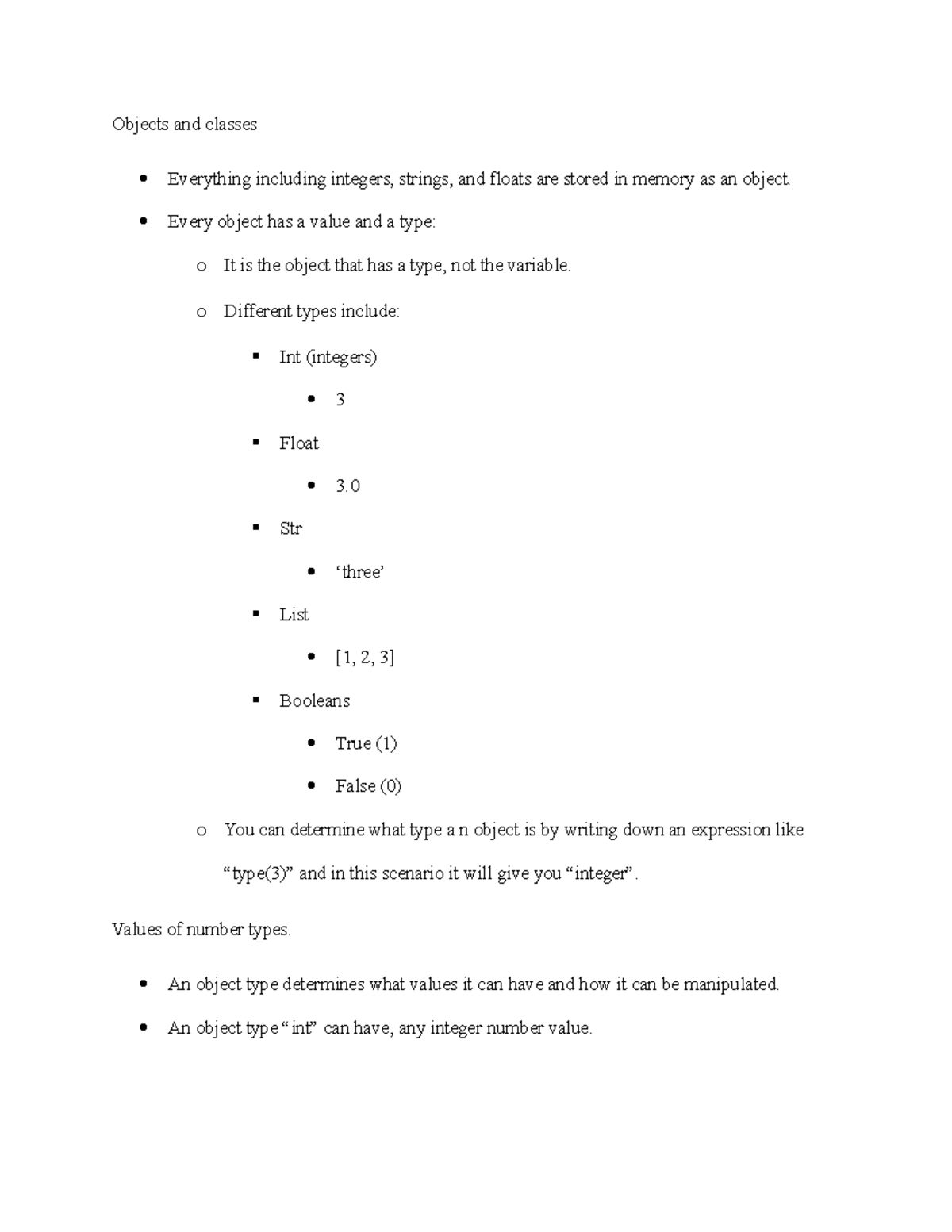 Lecture 1 - Objects and classes Everything including integers, strings ...