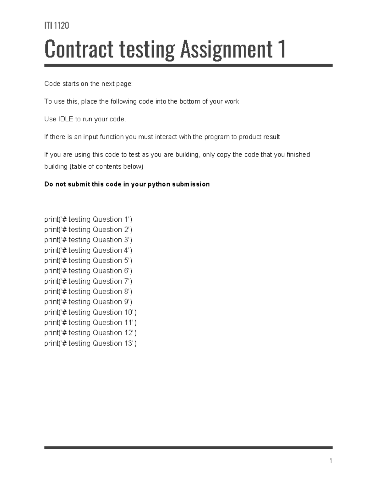 Contract testing Assignment 1 - ITI 1120 Contract testing Assignment 1 ...