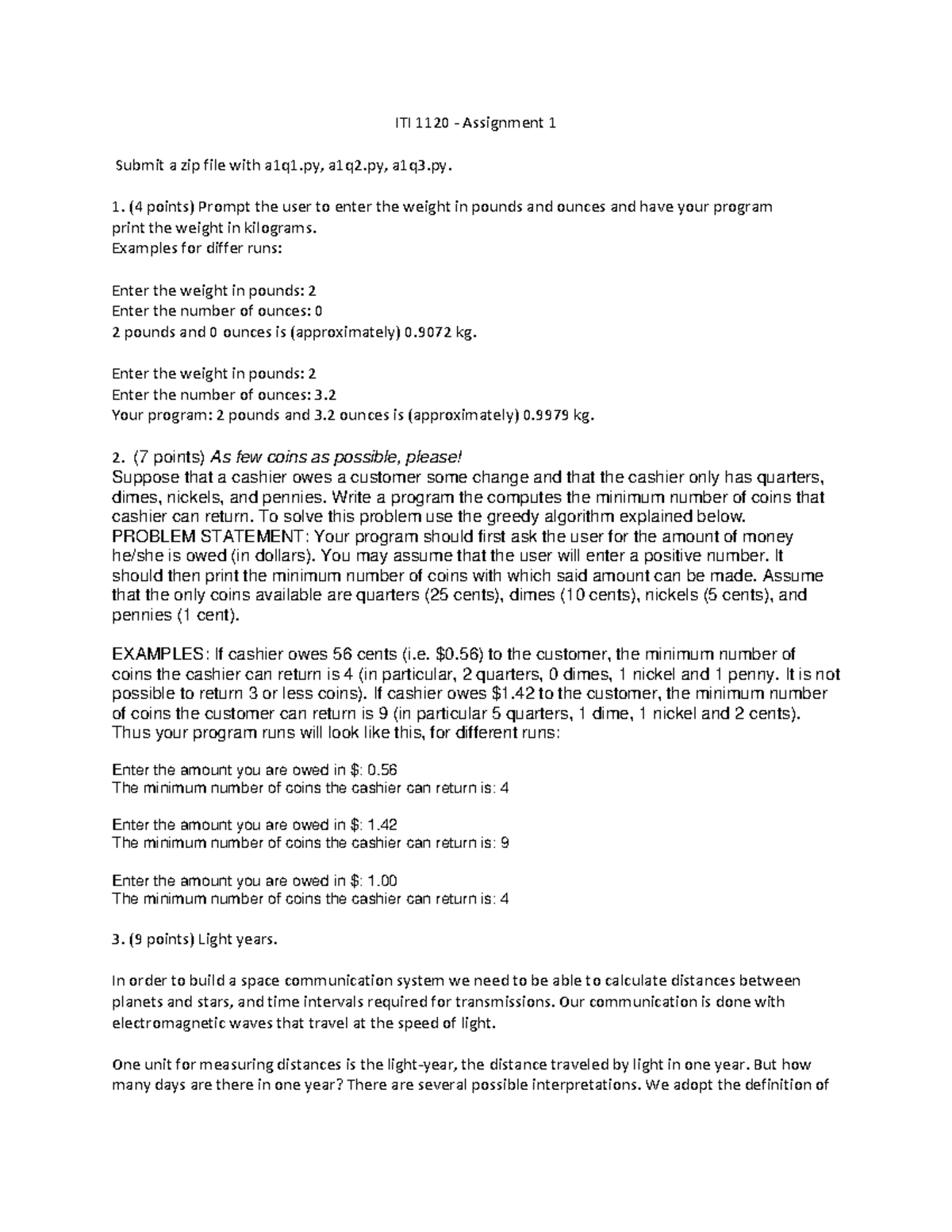 assignment 1/ iti 1120 - ASSIGNMENT 1 Read the instructions below ...