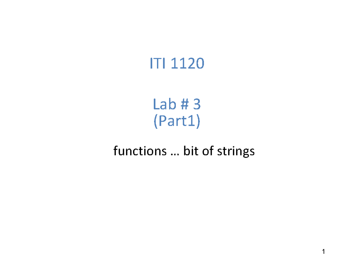 Lab3-students (part1) - ITI 1120 Lab # 3 (Part1) functions ... bit of ...