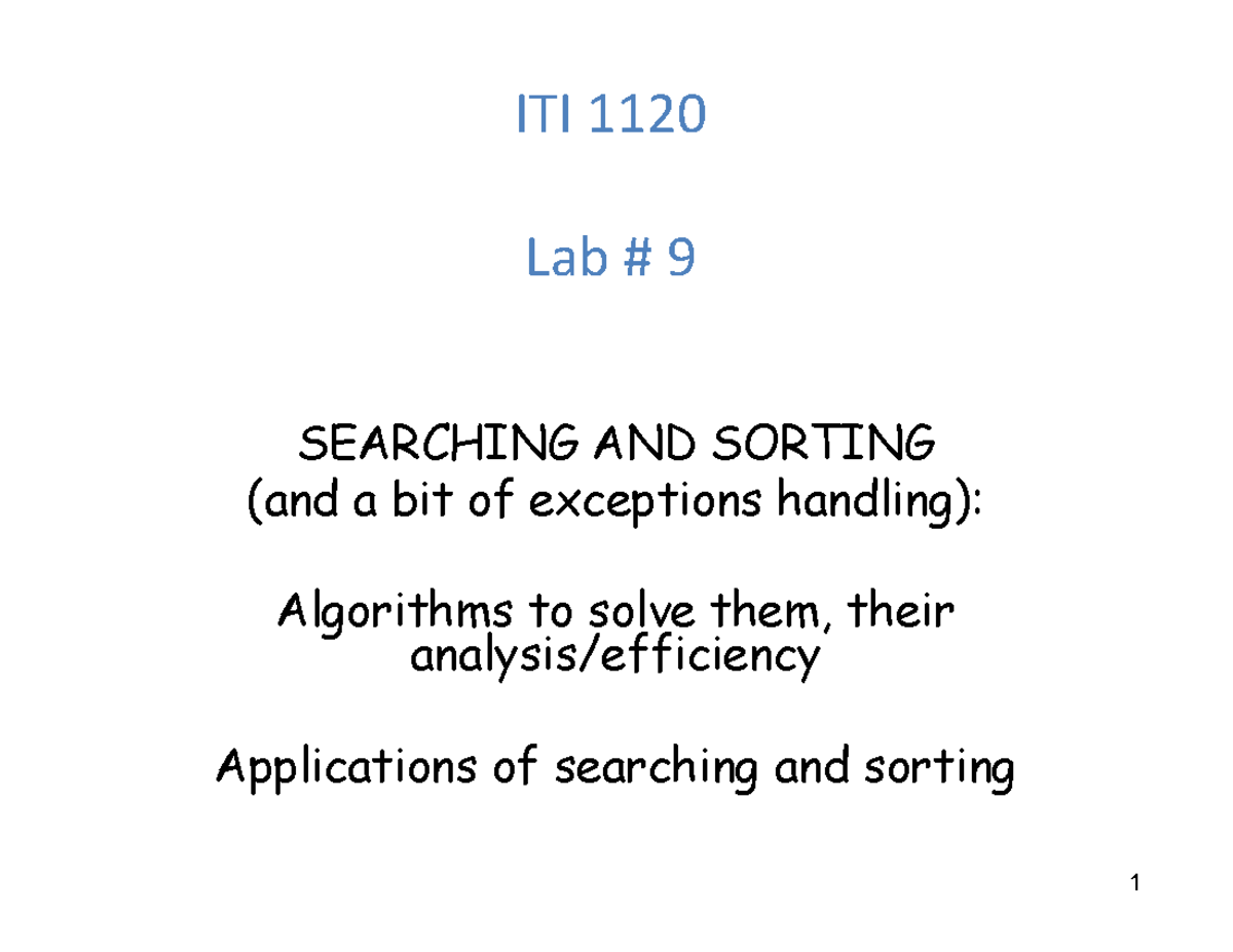 Lab 9 - Searching, Sorting & Exception Handling (ITI 1120) - Studocu