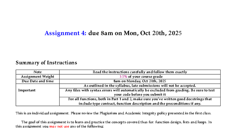 ITI 1120 - Homework 3: Python Functions and Lists | Course Hero