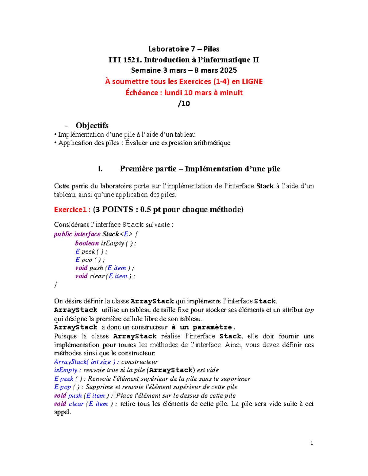LAB77 - lab 7 iti 1521 - Laboratoire 7 – Piles ITI 1521. Introduction à ...