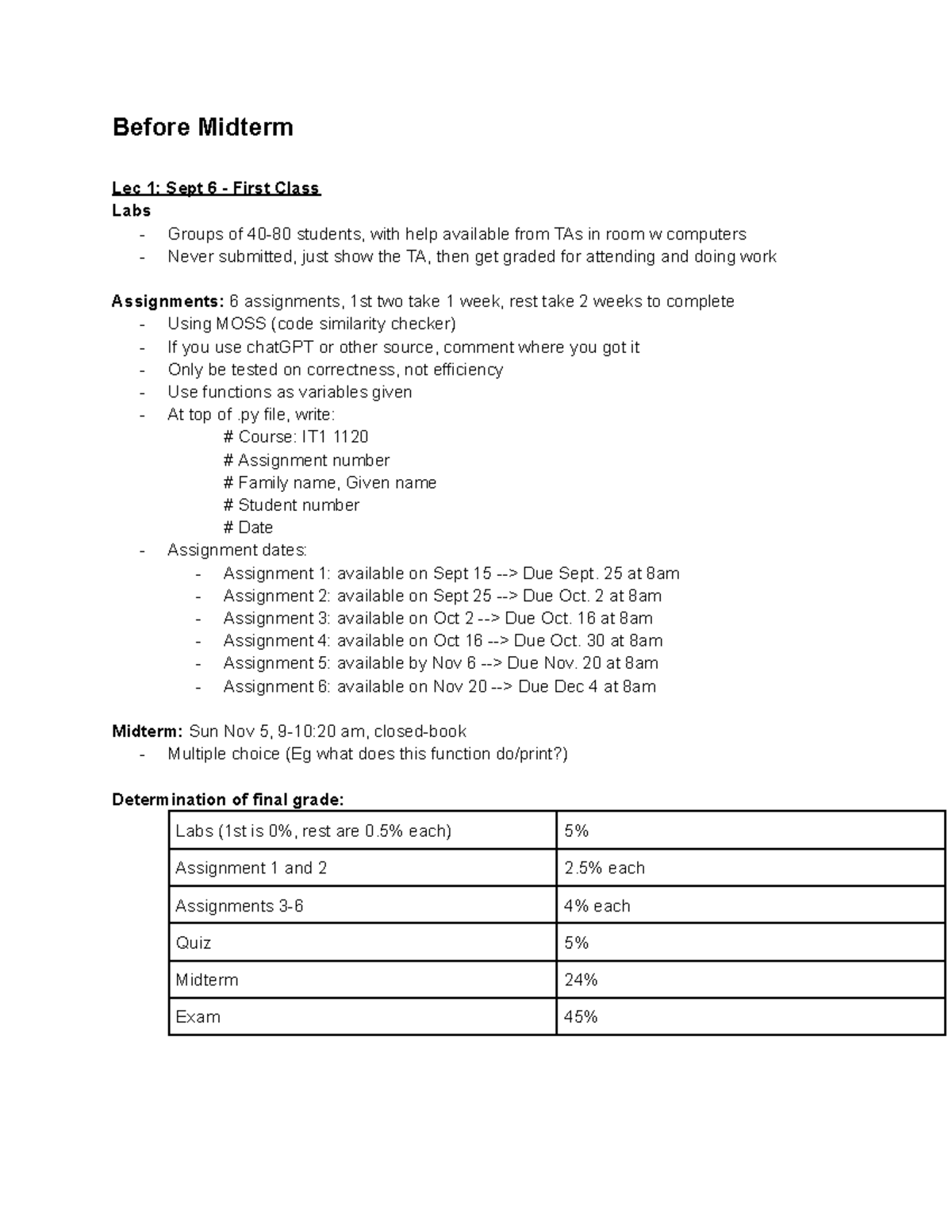 ITI 1120 Midterm Study Notes: Key Concepts and Assignments - Studocu