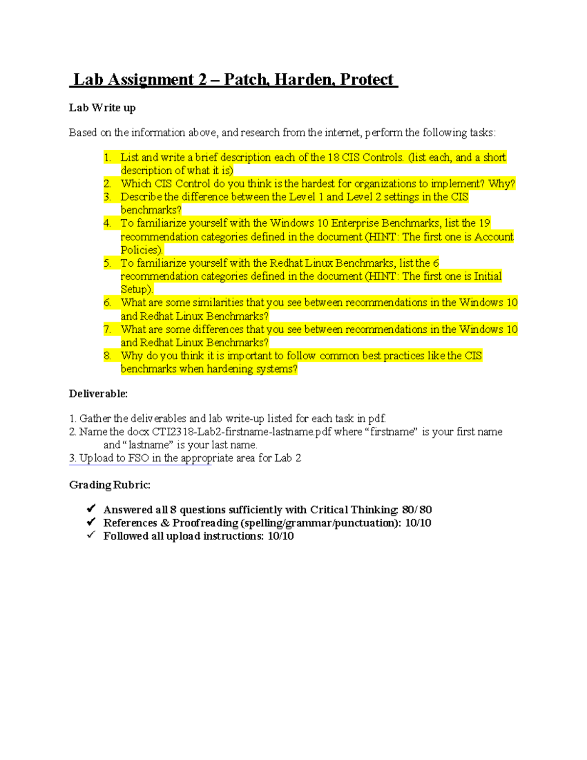 Lab Assignment 2: CIS Controls & Benchmark Analysis for ITI 2025 - Studocu