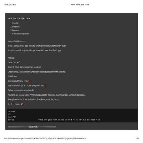 Python Basics Notes For Interns | PDF | Data Type | Variable (Computer ...