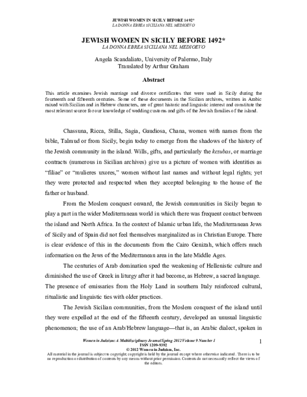 (PDF) Jewish Marriage and Divorce in 14th-15th Century Sicily