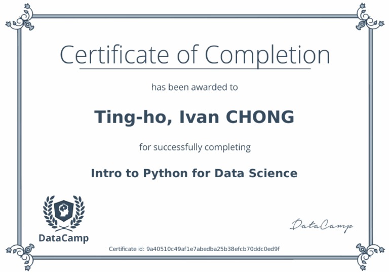 CertificateOfCompletion_Advance Your Python Skills for Data Science | PDF